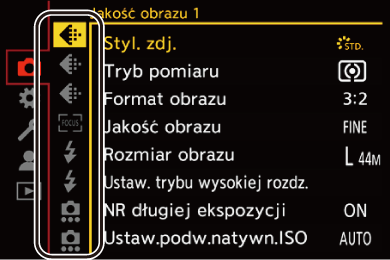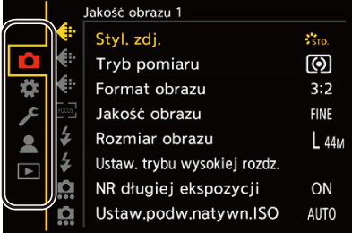 Menu można obsługiwać za pomocą przycisków kursora, joysticka, pokrętła lub dotykowo.