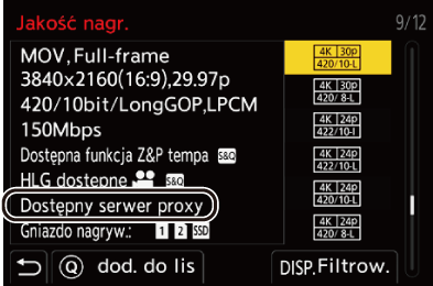 Pozycje dostępne dla nagrywania filmów z funkcją proxy są oznaczone jako [Dostępny serwer proxy].