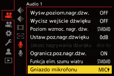 W przypadku korzystania ze stereofonicznego mikrofonu typu shotgun (DMW-MS2: wyposażenie opcjonalne) możliwe jest ustawienie zakresu rejestrowania dźwięku.