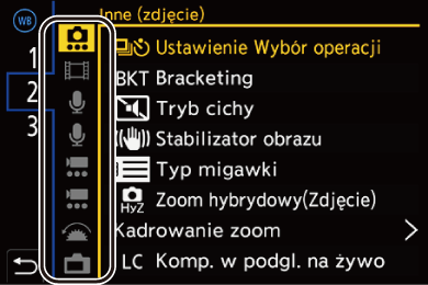 [Ustawienie w trybie Zdjęcie]/[Ustaw. w trybie Wid./S&Q]/[Ustaw. w trybie Odtw.]