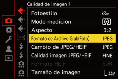 Esto está disponible cuando [Formato de Archivo Grab(Foto)] es [JPEG]/[HEIF]/[RAW+JPEG]/[RAW+HEIF]. (