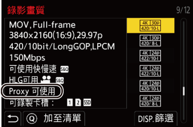 可錄製代理影片的項目會標示[Proxy 可使用]。