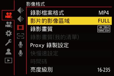您可選擇的[影片的影像區域]設定取決於[錄影畫質]設定。(