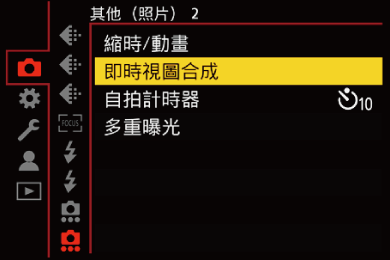 將顯示以設定的曝光時間(快門速度)拍攝並合成的影像,讓影像在拍攝進行中也能進行確認。