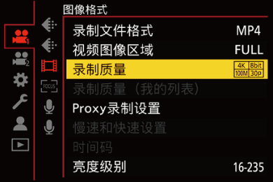可以选择的画质取决于拍摄模式、[系统频率]和[录制文件格式]设置。