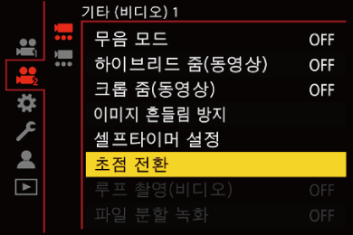 [초점 전환 녹화]을 활성화한 경우, 동영상 촬영을 시작하면 초점 전환이 시작됩니다.