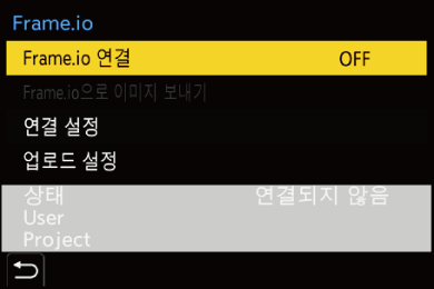 [Frame.io] 메뉴 화면에서 Frame.io와 관련된 [상태]를 볼 수 있습니다.