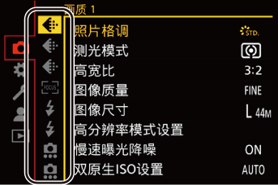 ]/[S&Q]模式下显示。选择适当的模式来查看[照片]菜单或[视频]菜单。(