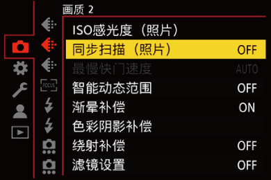 在同步扫描中设置的快门速度将与用于正常拍摄的快门速度分开保存。在同步扫描设置画面中,可以调用用于正常拍摄的当前快门速度并进行调整。
