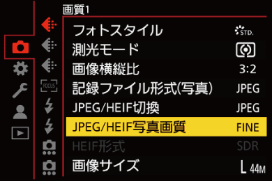 [写真画質]を[JPEG/HEIF写真画質]に変更