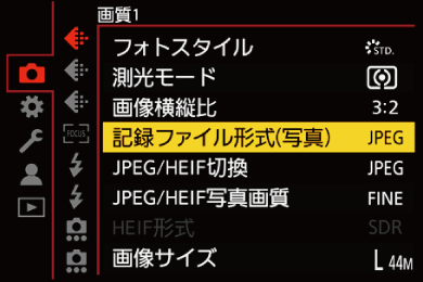 写真を記録するときのファイル形式(JPEGまたはHEIF)を設定します。