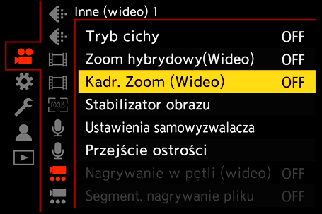 Ustaw [Kadr. Zoom (Wideo)] na [ON].