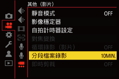 為避免影片因電源意外中斷而遺失,拍攝時會依設定的間隔將錄製的影片分段。