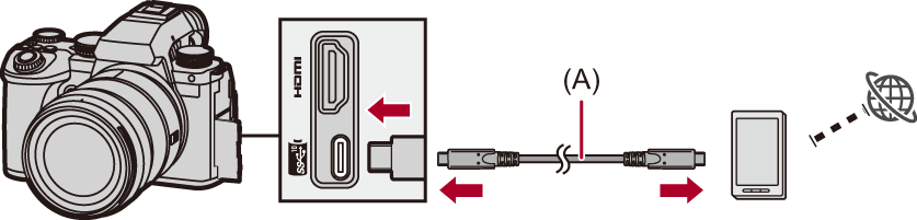Verbinden Sie die Kamera und das Smartphone mithilfe eines USB-Anschlusskabels.