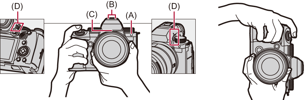 右手でカメラのグリップを包むようにしっかりと持ってください。