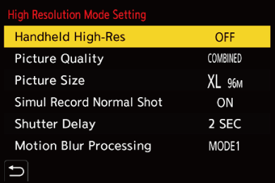 When [Handheld High-Res] is [ON], [Motion Blur Processing] is fixed to [MODE2].