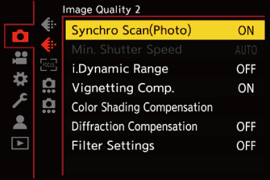 The shutter speed set in Synchro Scan is saved separately from the shutter speed used for normal recording. In the Synchro Scan setting screen, you can call up the current shutter speed for normal recording and adjust it.
