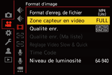 Les paramètres [Zone capteur en vidéo] que vous pouvez sélectionner sont différents en fonction du réglage [Qualité enr.]. (