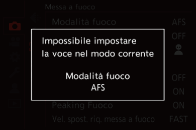 mentre è selezionata una voce di menu visualizzata in grigio, viene visualizzata la ragione per cui non può essere impostata.