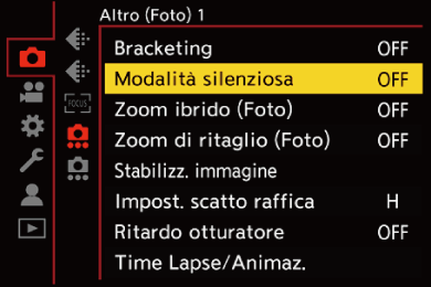 L'audio proveniente dall'altoparlante verrà disattivato e la luce assist AF verrà impostata sulla modalità forzato Off.