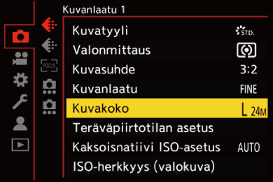 Asettaa kuvan kuvakoon. Kuvakoko vaihtelee sen mukaan mitä [Kuvasuhde] tai objektiivia käytetään.