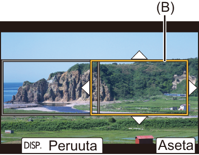 Rajaamalla osan Live View -näytössä olevasta kuvasta, on mahdollista tallentaa 4K/FHD-video, joka sisältää panorointia ja zoomausta kameran pysyessä kiinteässä asennossa.