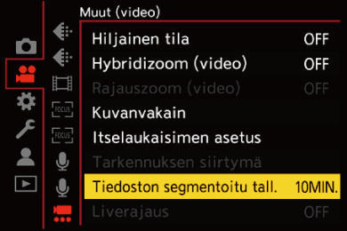 Jotta vältetään virtalähteen keskeytyksistä aiheutuva videon menettäminen, tallennettava video segmentoidaan asetettuihin väleihin tallennuksen aikana.