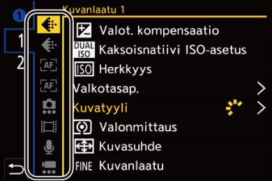 Mukauttaa näytettävän pikavalikon, kun tilavalitsin on asetettu asentoon [iA]/[P]/[A]/[S]/[M].