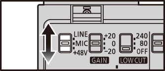 Set the recording level with the AUDIO LEVEL dial (INPUT1/INPUT2/INPUT3). (