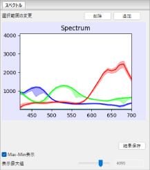 - 選択したエリアのスペクトルが表示されます。詳しくは、[スペクトル]タブをお読みください。