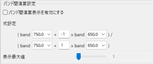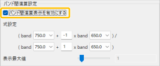- 3 設定パネル[拡張設定]タブ―[バンド間演算設定]の[式設定]で、手順2で確認した値を元に式と表示最大値を設定する