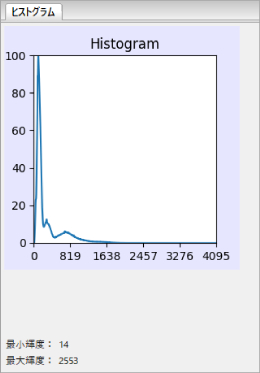 | [最小輝度]:撮影画像の最小輝度値を表示します。 [最大輝度]:撮影画像の最大輝度値を表示します。 |